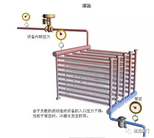 除了滯流,許多其它情況也會(huì)導(dǎo)致冷凝水積存在設(shè)備內(nèi)。例如:熱交換器的結(jié)構(gòu)或壓力平衡管,蒸汽疏水閥與管道安裝不恰當(dāng),冷凝水回收管線條件,等這類問題。